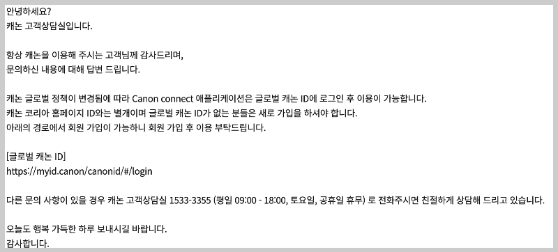 캐논 글로벌 정책이 바껴서 캐논과 캐논 코리아의 계정은 별도란다.