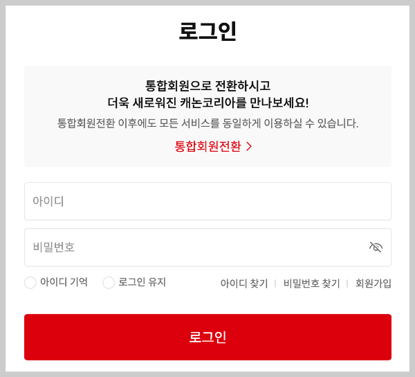 애초부터 캐논 코리아는 ID/Password로 가입을 했고,